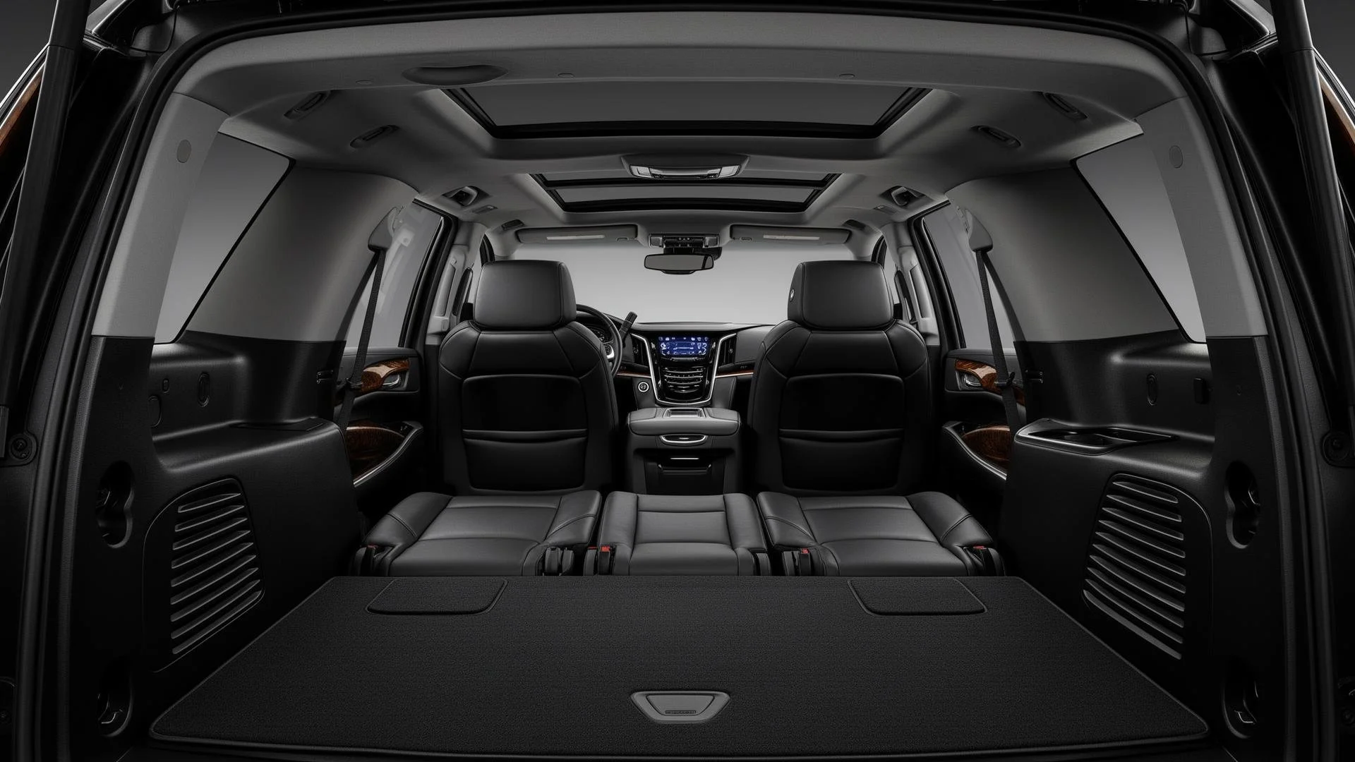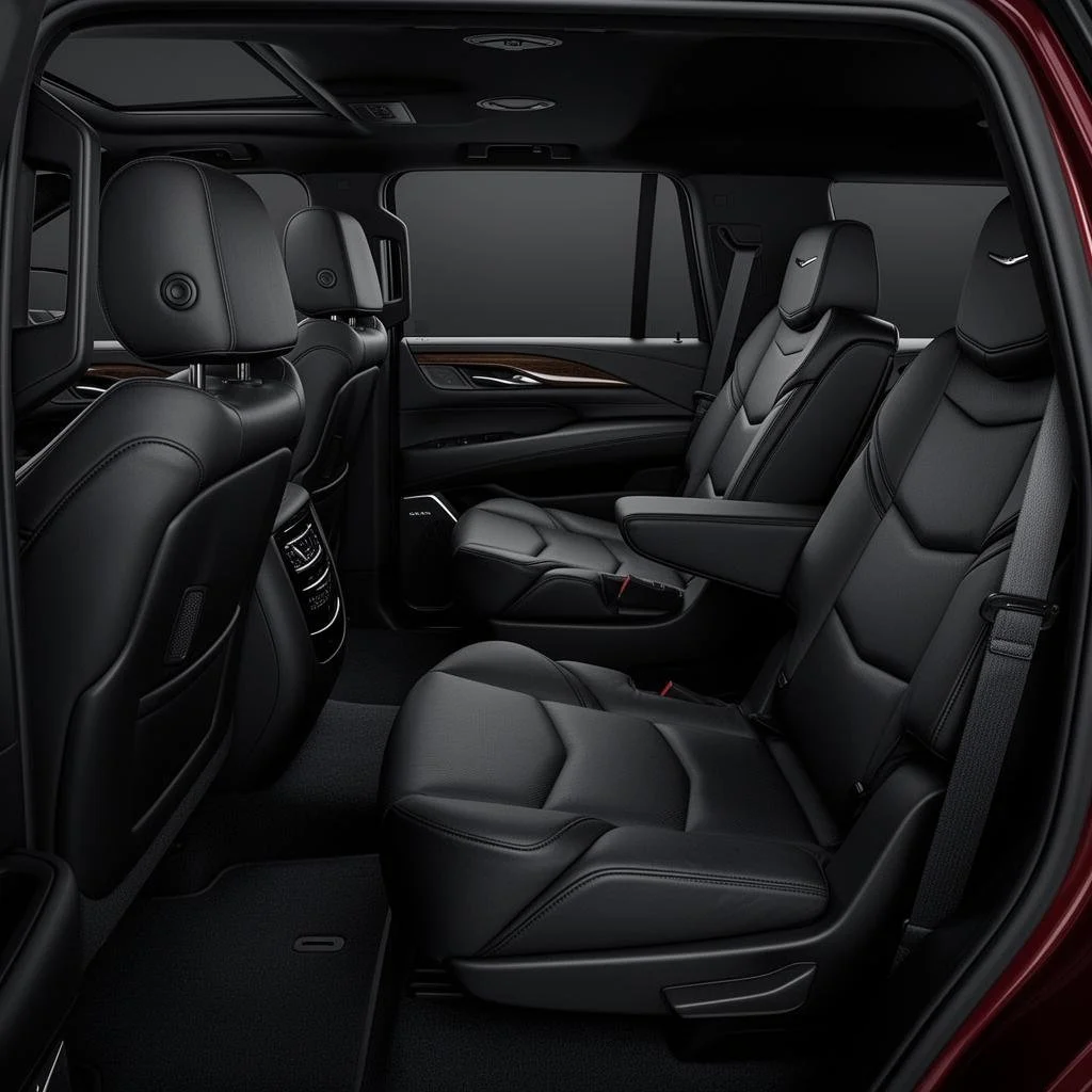 The Escalade's interior offers generous legroom and headroom, providing a spacious environment where passengers can relax and travel in complete comfort.